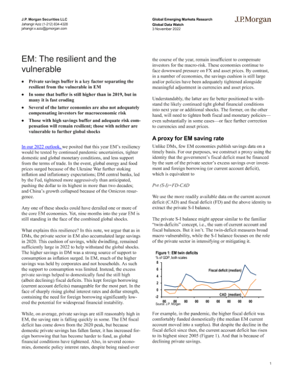 【J.P. Morgan】【20221103】JPMorgan Econ FI-EM The resilient and the vulnerable-7页 行业研究
