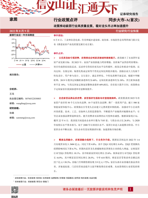 【山西证券】【20220809】家居行业政策点评:政策推动家居行业高质量发展,看好龙头市占率加速提升-4页 行业研究
