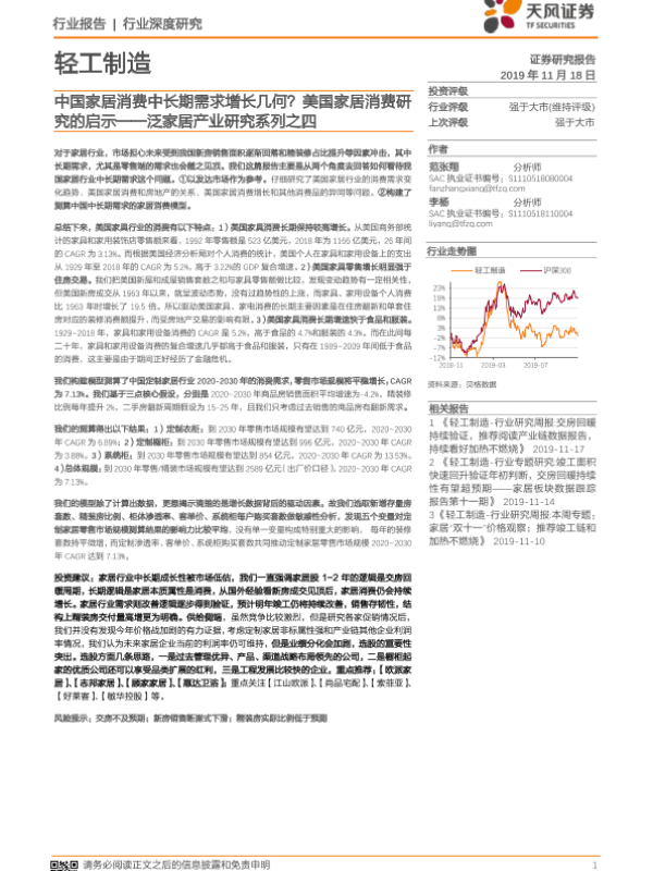 【天风证券】【20191118】中国家居消费中长期需求增长几何?美国家居消费研究的启示-20页 行业研究