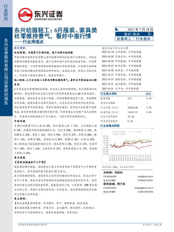 【东兴证券】【20210718】东兴纺服轻工行业周观点:6月服装、家具类社零维持景气,看好中报行情-10页 行业研究
