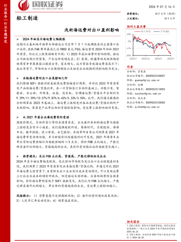 【国联证券】【20240716】轻工制造行业专题研究:浅析海运费对出口盈利影响-14页 行业研究