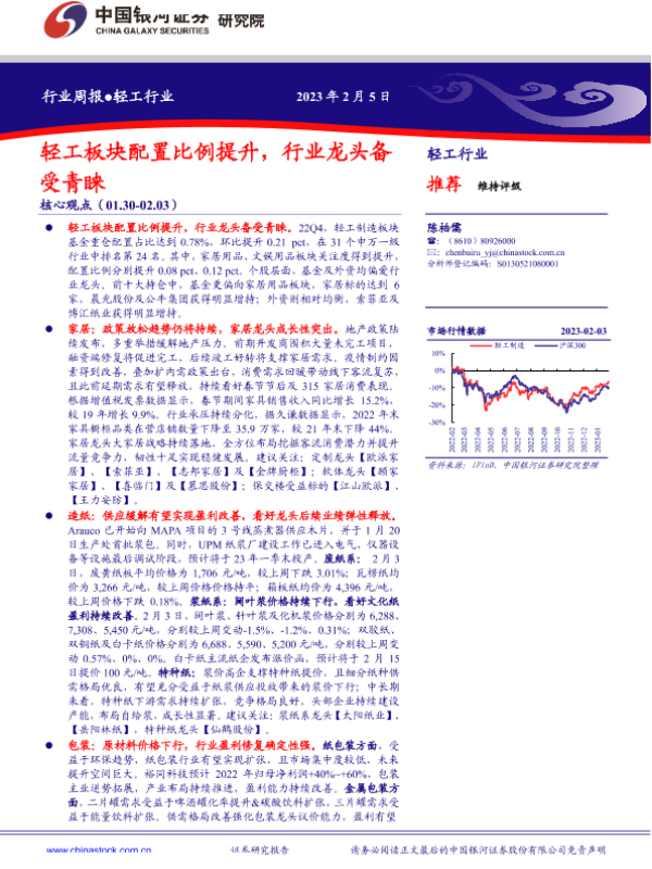【银河证券】【20230205】轻工行业周报:轻工板块配置比例提升,行业龙头备受青睐-29页 行业研究