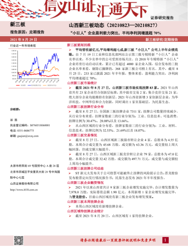 【山西证券】【20210829】山西新三板动态:“小巨人”企业盈利能力突出,平均净利润增速超70%-15页 行业研究