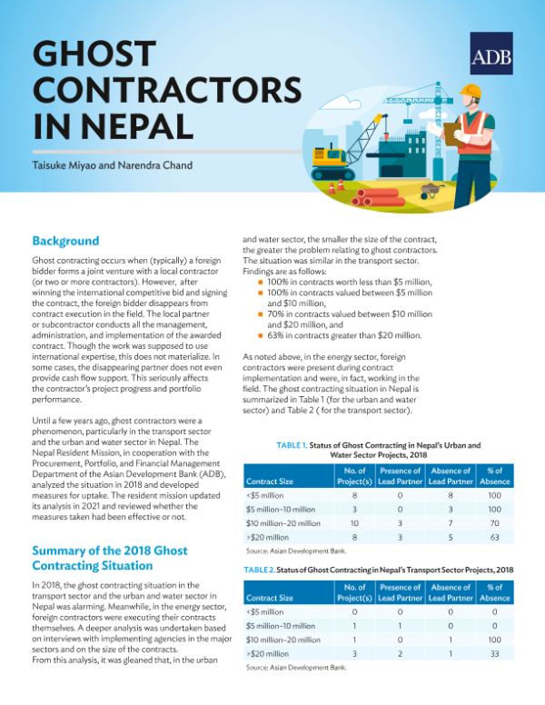 【Asian Development Bank】【202306】亚开行-尼泊尔的幽灵承包商-6页 行业研究