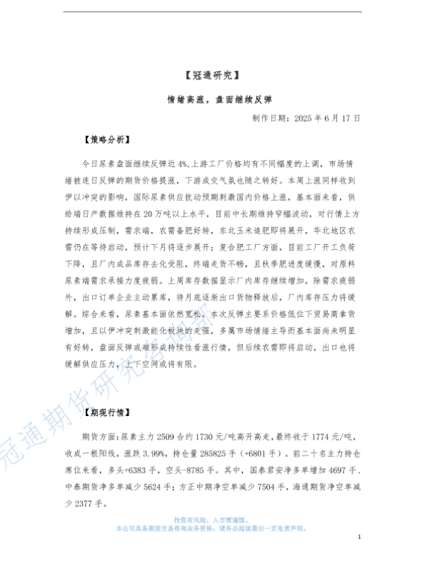 【冠通期货】【20250617】情绪高涨,盘面继续反弹-4页 证券期货研究报告