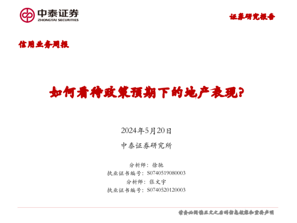 【中泰证券】【20240520】信用业务:如何看待政策预期下的地产表现?-16页 行业研究