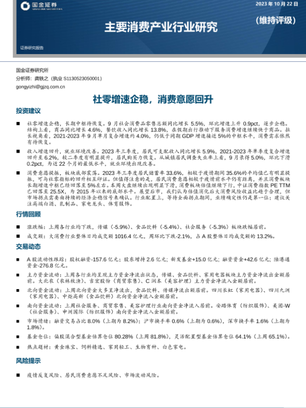 【国金证券】【20231022】主要消费产业行业研究:社零增速企稳,消费意愿回升-18页 行业研究