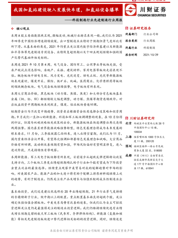 【川财证券】【20211029】20211029-川财证券-科技制造行业先进制造行业周报:我国加氢站建设驶入发展快车道,加氢站设备爆单-11页 行业研究