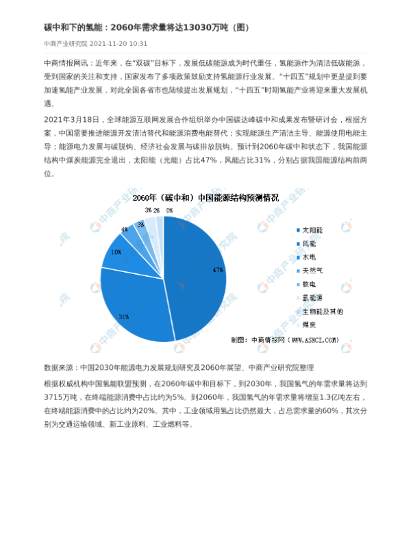 【中商产业研究院】【2023】碳中和下的氢能:2060年需求量将达13030万吨-2页 行业研究