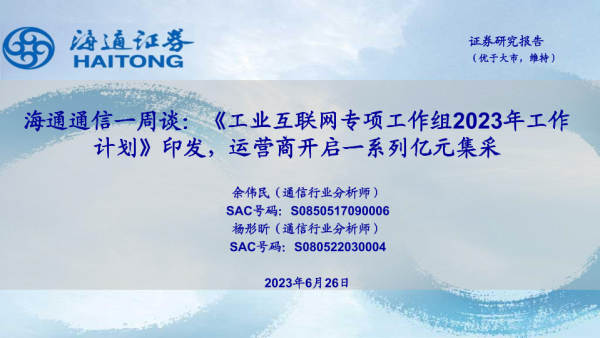 【海通证券】【20230626】海通通信一周谈:《工业互联网专项工作组2023年工作计划》印发,运营商开启一系列亿元集采-11页 行业研究