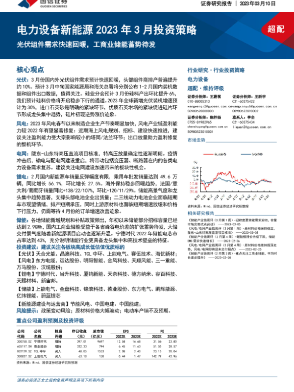 【国信证券】【20230310】电力设备新能源2023年3月投资策略:光伏组件需求快速回暖,工商业储能蓄势待发-32页 行业研究