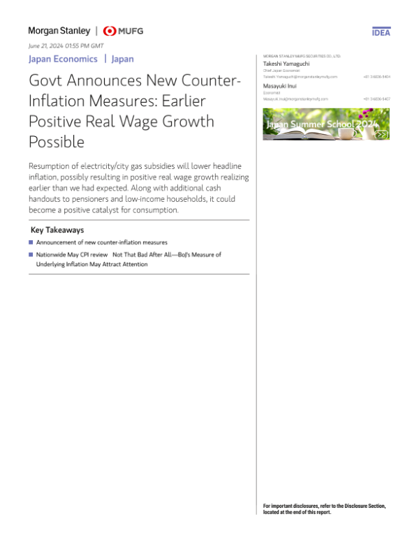 【Morgan Stanley】【20240621】政府宣布新的反通胀措施:更早实现正实际工资增长的可能性-9页 行业研究