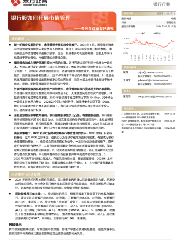 【东方证券】【20240316】银行行业央国企改革专题研究:银行股如何开展市值管理-15页 行业研究