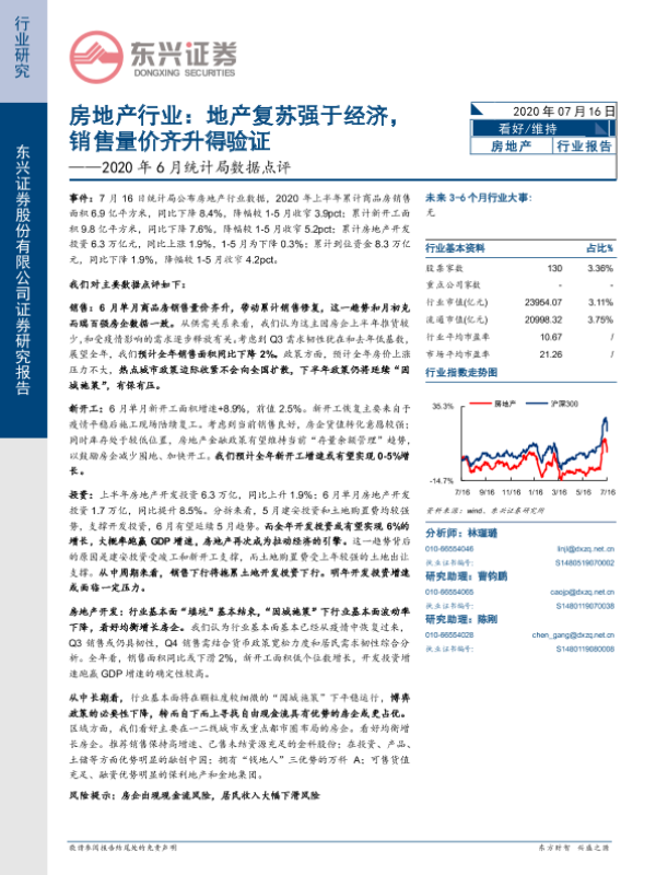 【东兴证券】【20200716】房地产行业2020年6月统计局数据点评:地产复苏强于经济,销售量价齐升得验证-9页 行业研究
