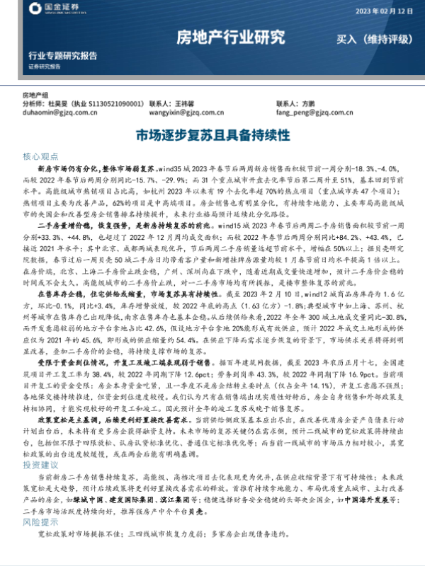【国金证券】【20230212】房地产行业研究:市场逐步复苏且具备持续性-18页 行业研究