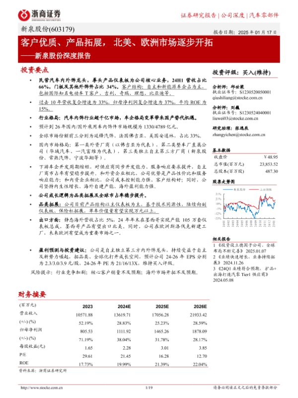 【浙商证券】【20250117】新泉股份深度报告:客户优质、产品拓展,北美、欧洲市场逐步开拓-19页 行业研究