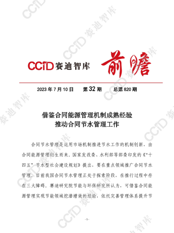 【赛迪研究院节能与环保研究所】【20230710】借鉴合同能源管理机制成熟经验推动合同节水管理工作-9页 政策文件