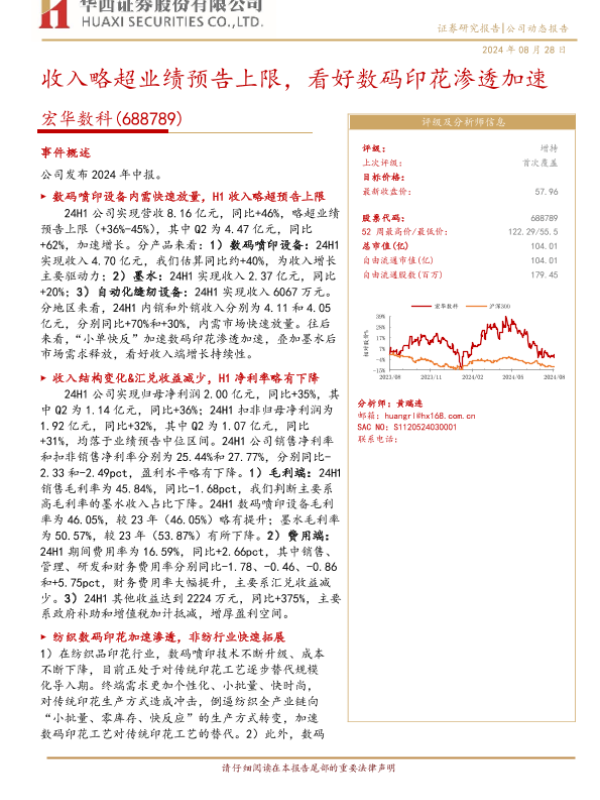 【华西证券】【20240828】宏华数科(688789)收入略超业绩预告上限,看好数码印花渗透加速-10页 证券期货研究报告