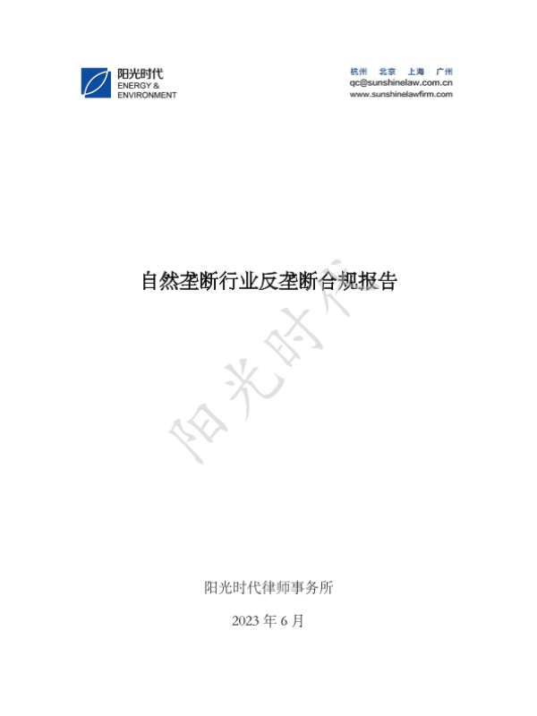 【阳光时代律师事务所】【202306】自然垄断行业反垄断合规报告-36页 行业研究