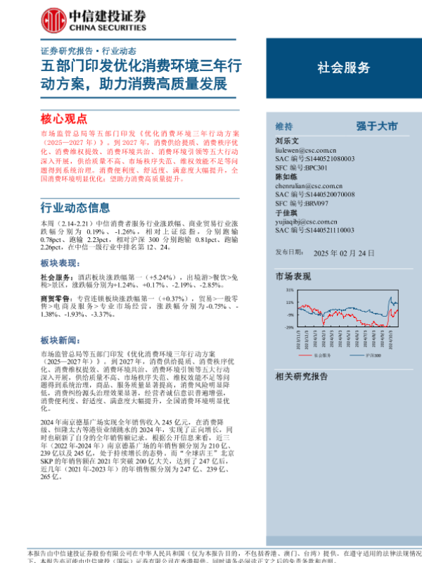 【中信建投证券】【20250224】社会服务行业:五部门印发优化消费环境三年行动方案,助力消费高质量发展-25页 行业研究