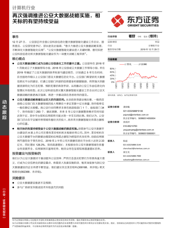 【东方证券】【20191229】计算机行业:再次强调推进公安大数据战略实施,相关标的有望持续受益-3页 行业研究