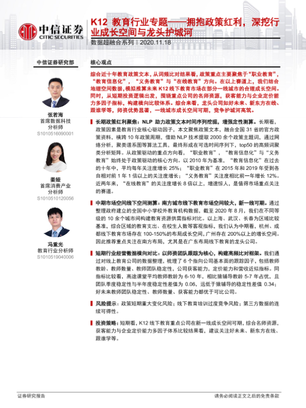 【中信证券】【20201118】K12教育行业专题——拥抱政策红利,深挖行业成长空间与龙头护城河-24页 行业研究