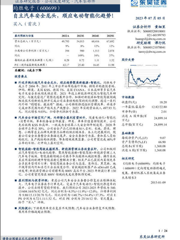 【东吴证券】【20230706】均胜电子(600699)自主汽车安全龙头,顺应电动智能化趋势!-24页 行业研究
