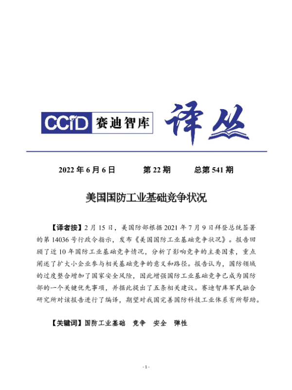 【赛迪智库军民融合研究所】【20220606】美国国防工业基础竞争状况-28页 行业研究