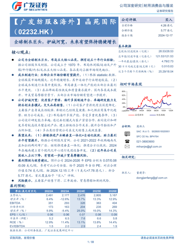 【广发证券】【20241217】晶苑国际(02232.HK)全球制衣巨头,护城河宽,未来有望保持稳健增长-33页 行业研究