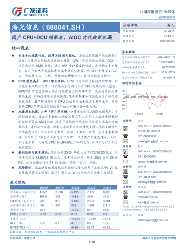 【广发证券】【20230324】国产CPU+DCU领航者,AIGC时代迎新机遇-30页 行业研究