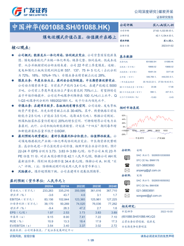 【广发证券】【20230102】中国神华(601088)煤电运模式价值凸显,估值提升在路上-25页 行业研究