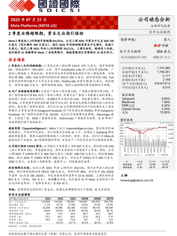 【国证国际】【20250731】Meta Platforms(META.US):2季度业绩超预期,资本支出指引强劲-7页 公司研究