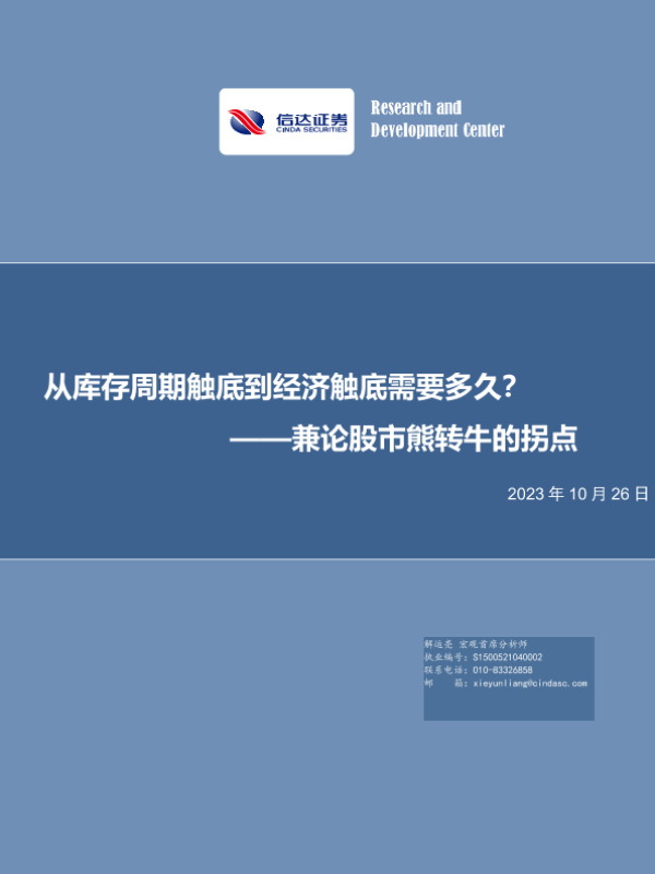 【信达证券】【20231026】兼论股市熊转牛的拐点:从库存周期触底到经济触底需要多久?-26页 宏观策略
