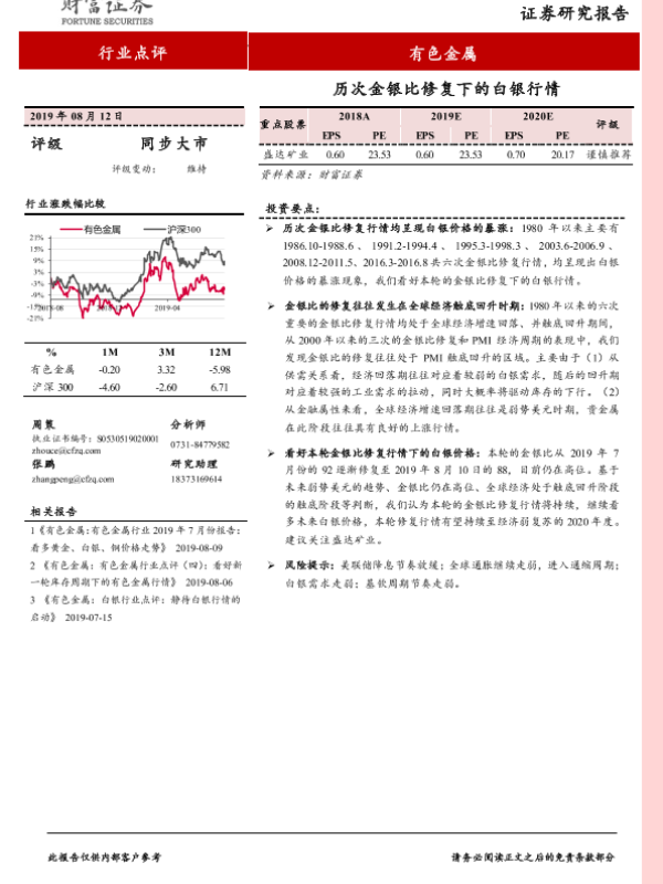 【财信证券】【20190812】历次金银比修复下的白银行情-8页 行业研究