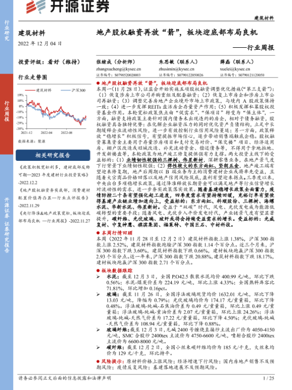 【开源证券】【20221204】建筑材料行业周报:地产股权融资再放“箭”,板块迎底部布局良机-25页 行业研究