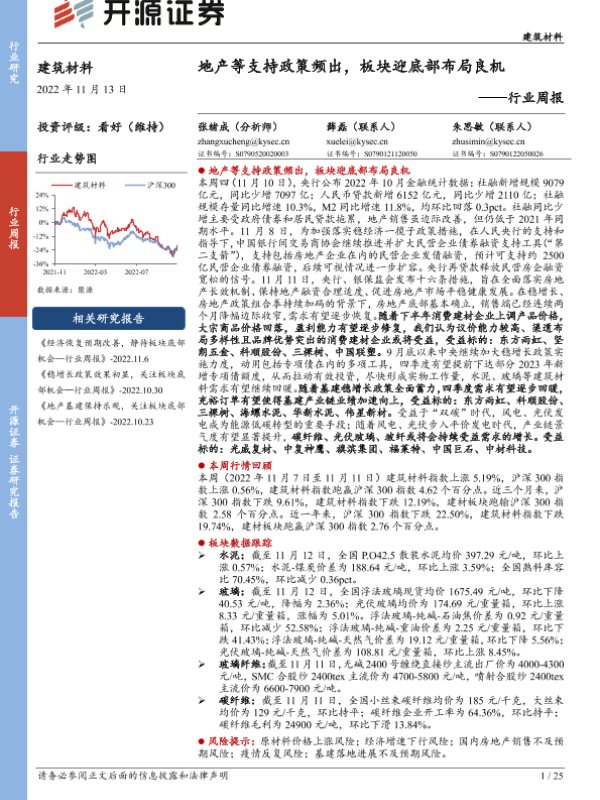 【开源证券】【20221113】建筑材料行业周报:地产等支持政策频出,板块迎底部布局良机-25页 行业研究