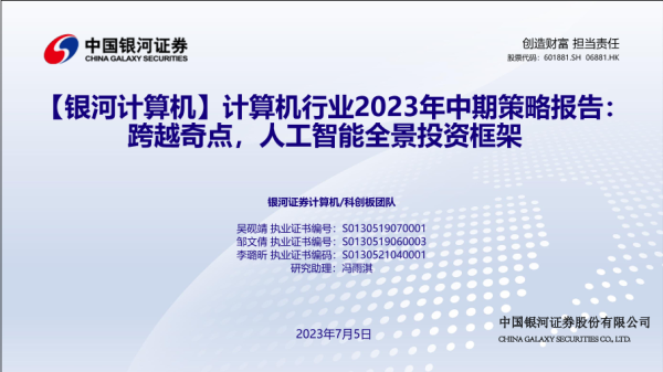 【银河证券】【20230705】计算机行业2023年中期策略报告:跨越奇点,人工智能全景投资框架-65页 行业研究