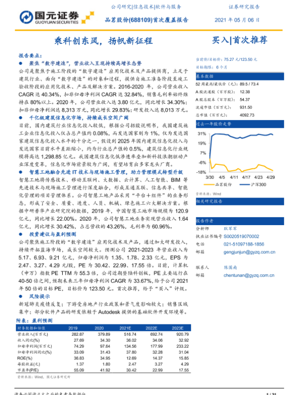 【国元证券】【20210506】20210506-国元证券-品茗股份-688109.SH-首次覆盖报告:乘科创东风,扬帆新征程-31页 行业研究
