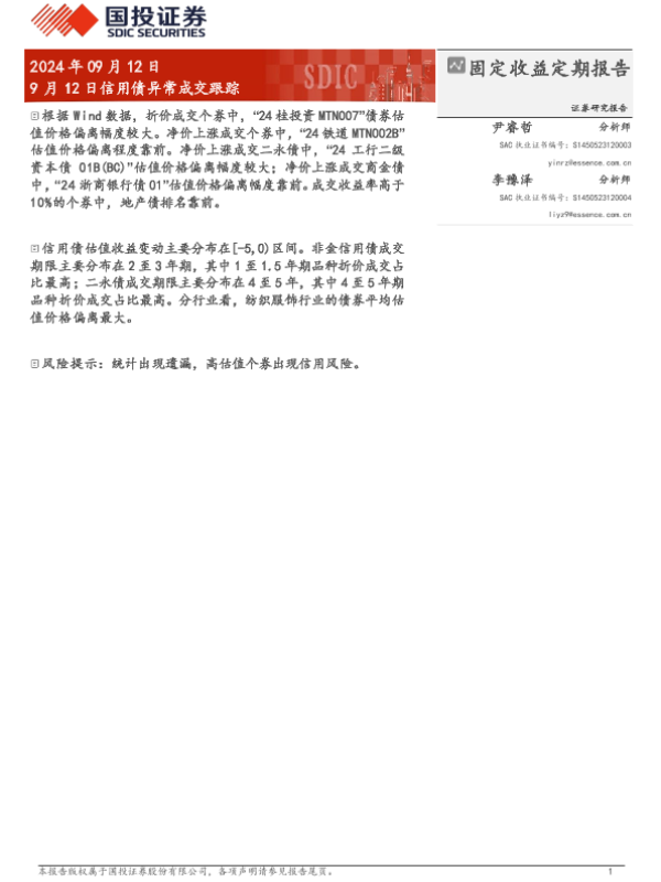 【国投证券】【20240912】9月12日信用债异常成交跟踪-10页 行业研究