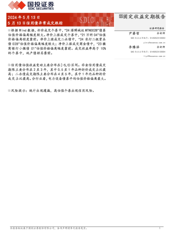 【国投证券】【20240513】5月13日信用债异常成交跟踪-10页 行业研究