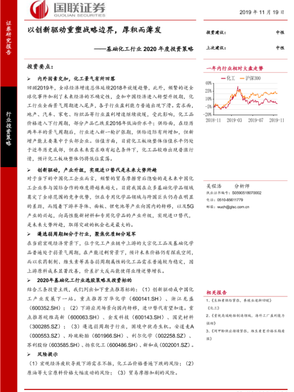 【国联证券】【20191119】基础化工行业2020年度投资策略:以创新驱动重塑战略边界,厚积而薄发-25页 行业研究