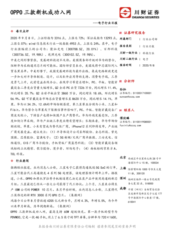 【川财证券】【20200908】电子行业日报:OPPO三款新机成功入网-5页 证券期货研究报告