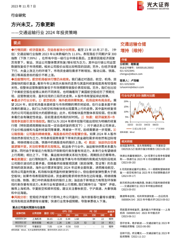 【光大证券】【20231107】交通运输行业2024年投资策略:方兴未艾,万象更新-33页 行业研究