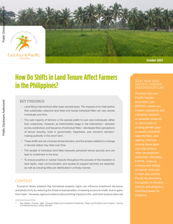 【世界银行东亚太性别创新实验室(EAPGIL)】【20231001】世界银行-土地保有权的变化如何影响菲律宾农民?-8页 行业研究