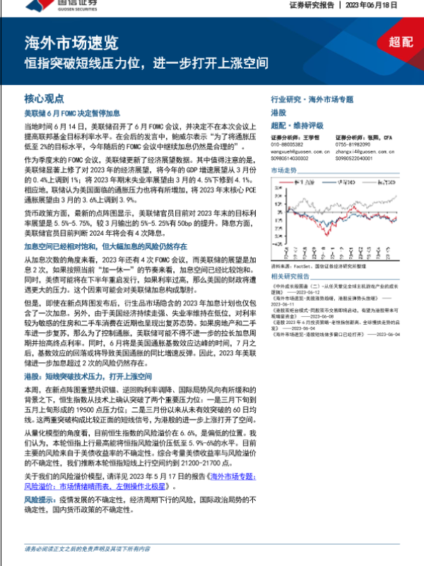 【国信证券】【20230618】海外市场速览:恒指突破短线压力位,进一步打开上涨空间-17页 行业研究