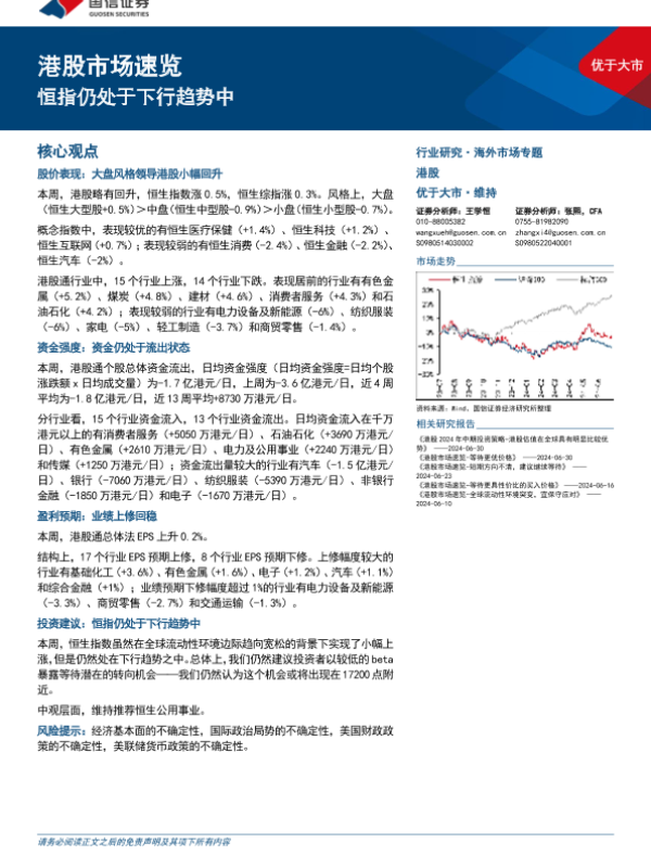 【国信证券】【20240707】港股市场速览:恒指仍处于下行趋势中-18页 行业研究