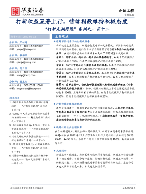 【华安证券】【20230213】“打新定期跟踪”系列之一百十二:打新收益显著上行,情绪指数维持积极态度-21页 行业研究