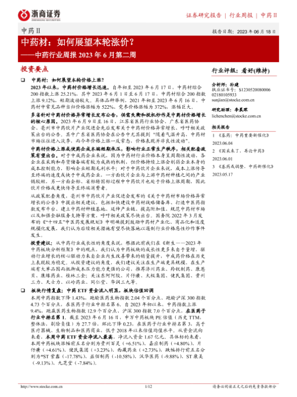 【浙商证券】【20230618】中药行业周报2023年6月第二周:中药材:如何展望本轮涨价?-12页 行业研究