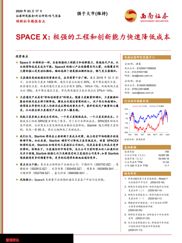 【西南证券】【20200317】特斯拉专题报告五 SPACE X:极强的工程和创新能力快速降低成本-14页 行业研究