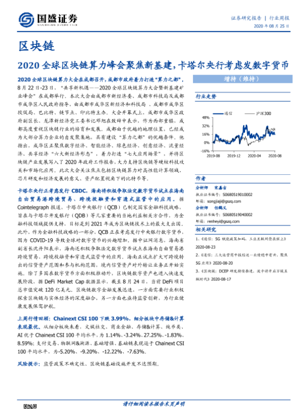 【国盛证券】【20200825】2020全球区块链算力峰会聚焦新基建,卡塔尔央行考虑发数字货币-8页 行业研究